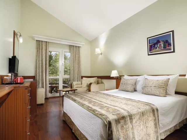 Dvojlôžková izba je vybavená kúpeľňou s WC (vrátane sušiča na vlasy), klimatizáciou, TV so satelitným príjmom, telefónom, minibarom (naplneným vodou a džúsom pri príchode) a setom na prípravu čaju a kávy. Každá izba má balkón alebo terasu a jej veľkosť je 22 m². Možnosť vyžiadať izby pre handicapovaných klientov.