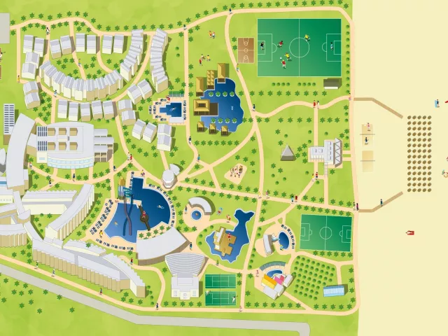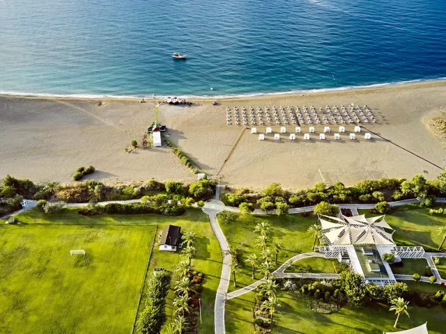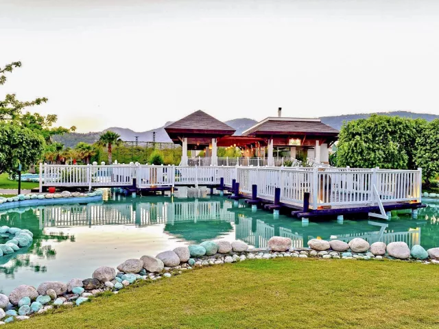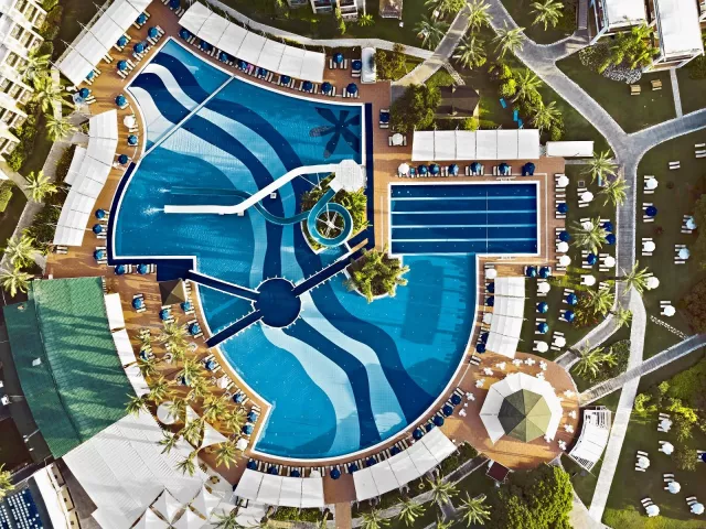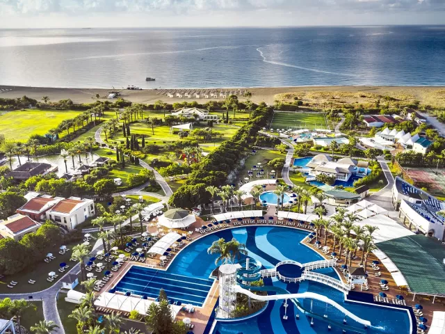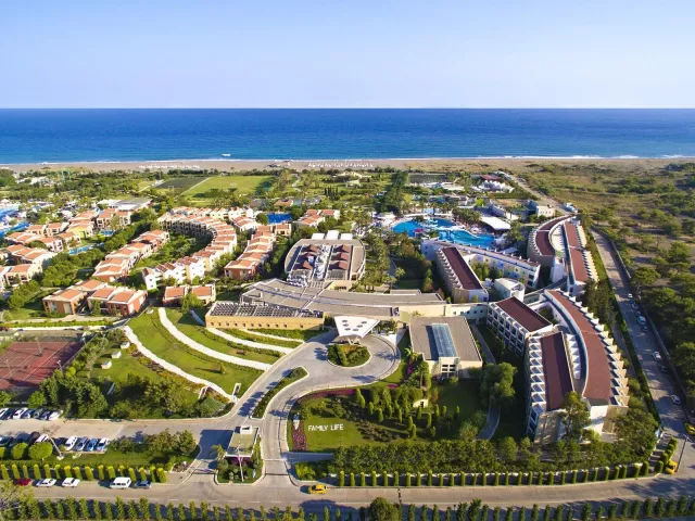 Rezort disponuje 500 izbami rozloženými v 8 budovách. Nájdete tu vstupnú halu s recepciou, hlavná reštaurácia a štyri à la carte reštaurácie – ázijskú, taliansku, tureckú, a gril. Zariadenie okrem iného zahŕňa snack bary, bary, kaderníctvo, SPA centrum, diskotéku, práčovňu, lekára, požičovňu áut, obchody a konferenčné miestnosti. K dispozícii sú dva bazény, šmykľavky, tri detské bazény a vnútorný bazén. Terasa na slnenie ponúka lehátka, slnečníky a osušky zdarma. Pavilóny pri bazéne sú dostupné za príplatok (rezervácia nutná).