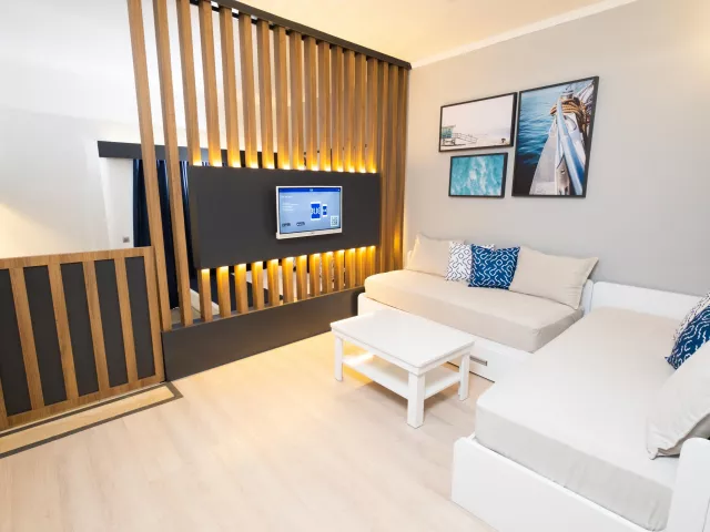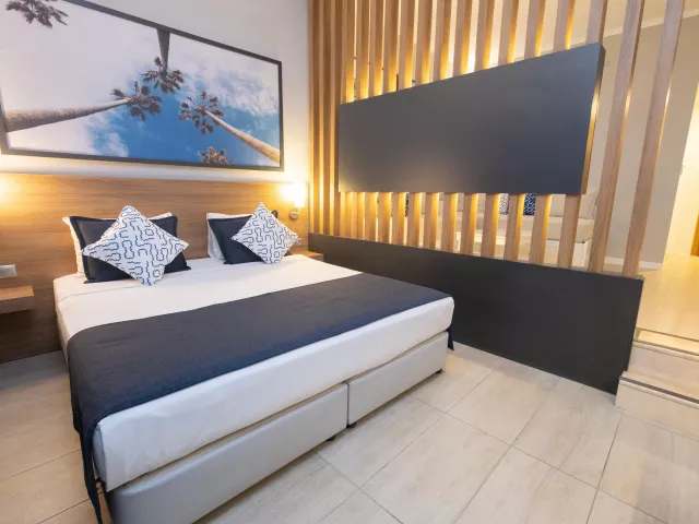 Dvojlôžková izba typu Large má kúpeľňu/WC, sušič vlasov, klimatizáciu, telefón, TV, wifi (zdarma), minibar (s vodou pri príchode), set na prípravu čaju a kávy, trezor (zdarma) a balkón alebo terasu. Ďalšie typy izieb zahŕňajú Suitu so 2 spálňami oddelenými posuvnými dverami a Junior Suitu s oddelenými spálňou a obývacou izbou, obe s rozlohou 38 m2.