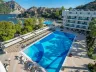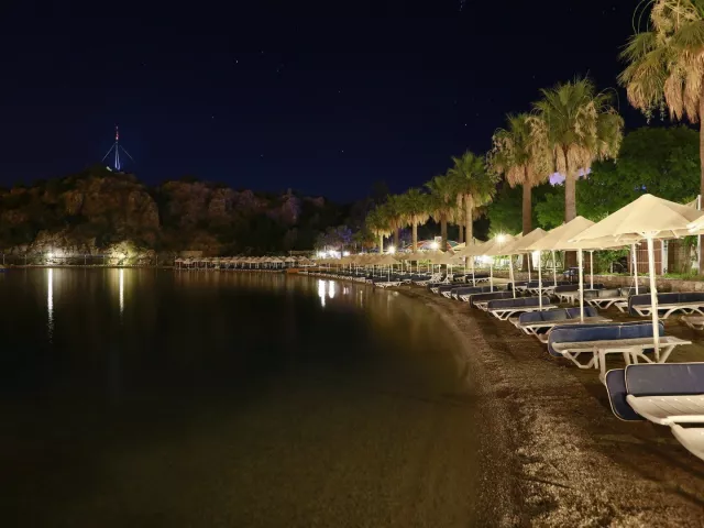 Hotelová pláž má piesočnato-okruhliakový charakter a pozvoľný vstup do mora. Je ocenená certifikátom Modrá vlajka a nachádza sa priamo pri hoteli. Vstup do vody je možný aj z dreveného móla, pričom slnečníky a ležadlá sú poskytované bezplatne. Osušky sú k dispozícii na zálohu.