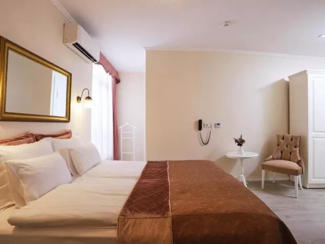 Dvojlôžková klimatizovaná Deluxe izba ponúka manželskú posteľ alebo 2 oddelené lôžka, vlastné sociálne zariadenie (WC, sprcha alebo vaňa, fén), TV, telefón a minibar. Disponuje aj Wi-Fi zdarma.