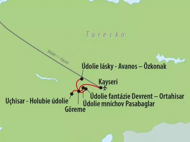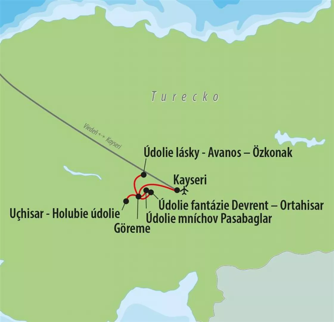 V cene je zahrnutá polpenzia, ktorá zabezpečuje raňajky a večere. Doprava je zabezpečená letecky z Viedne do Kayseri s možným prestupom v Istanbule.