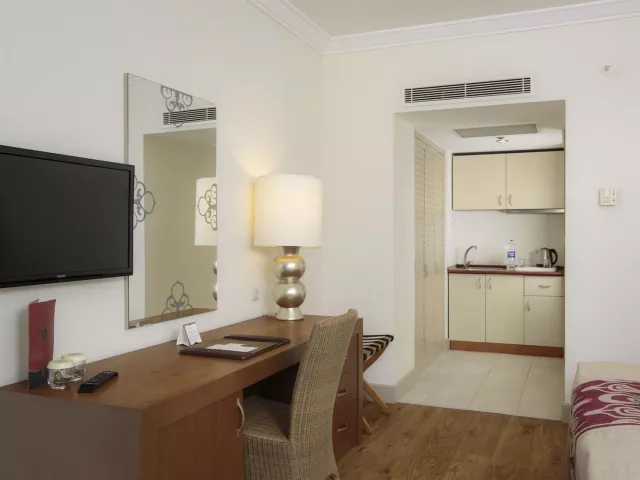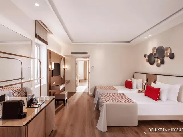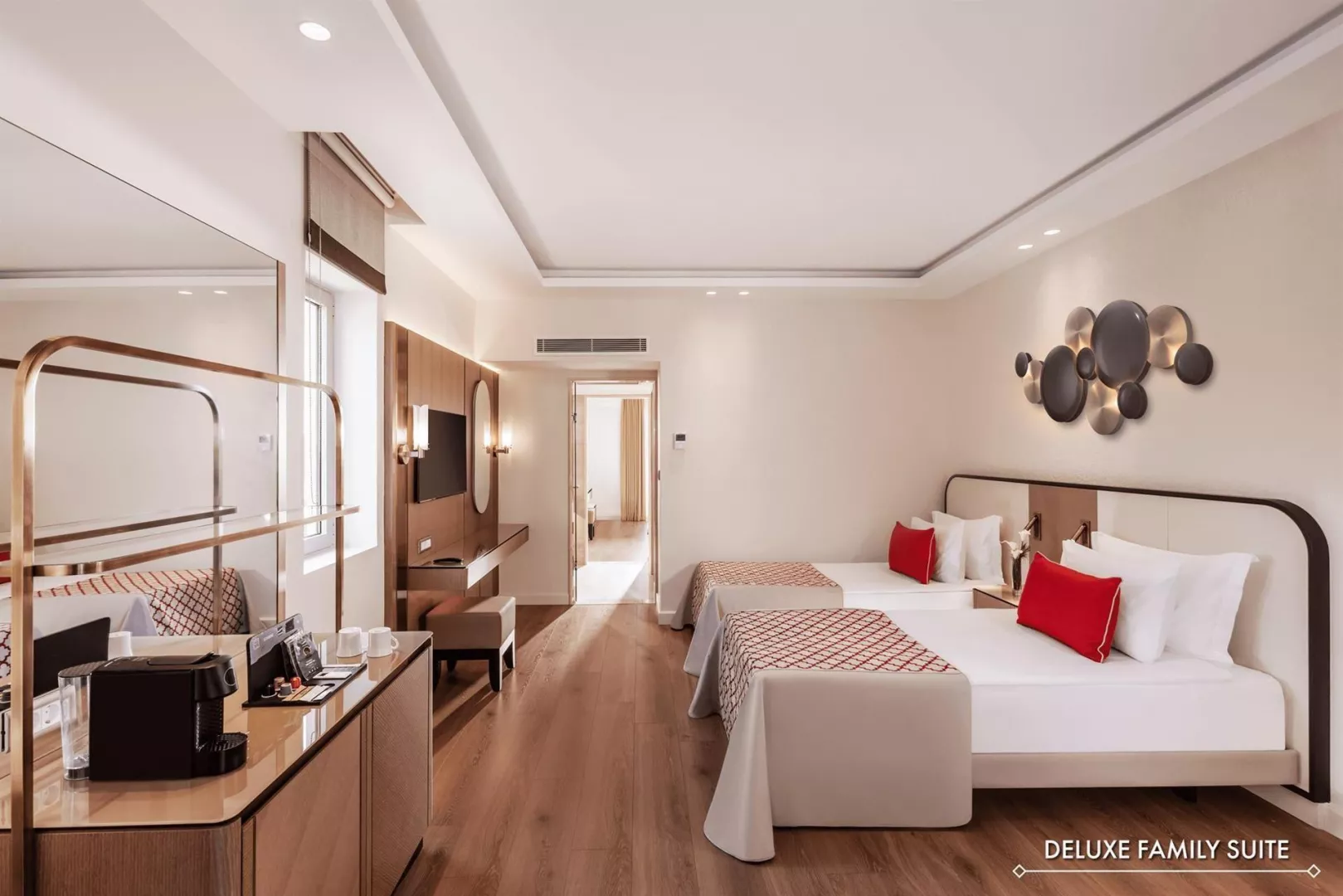 Hotel ponúka 507 izieb, ktoré sú moderne a komfortne zariadené. Každá izba má balkón, centrálnu klimatizáciu, minibar, trezor, TV a WiFi pripojenie. K dispozícii sú rôzne typy izieb: deluxe, rodinné a mezonetové izby s rôznymi kapacitami a výhľadmi.