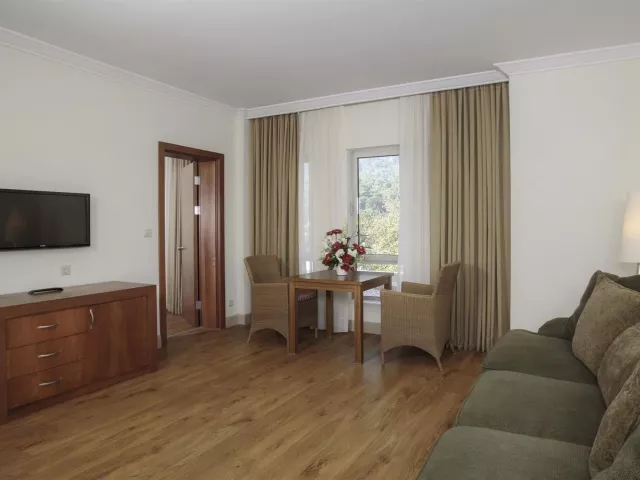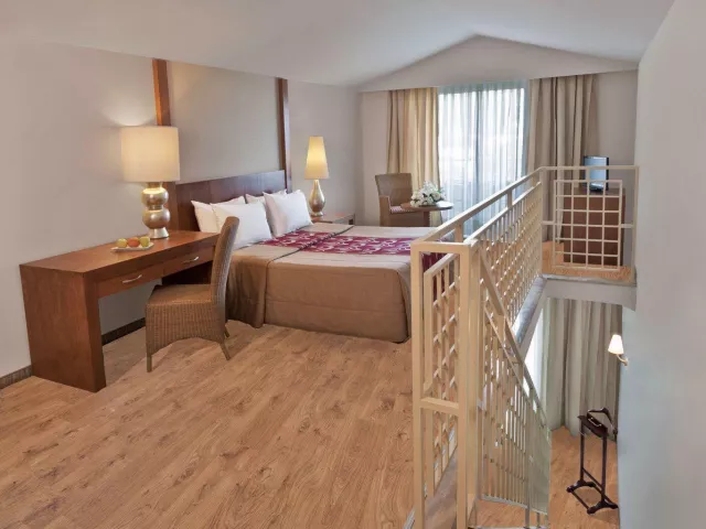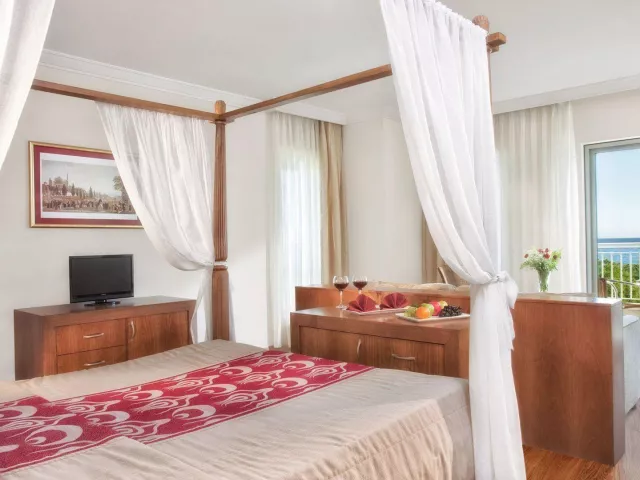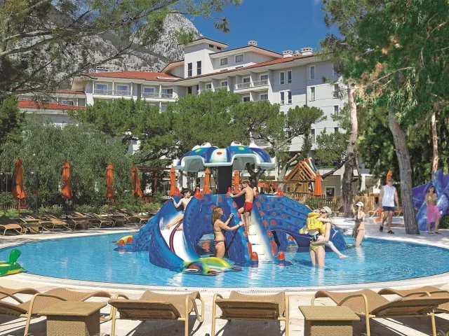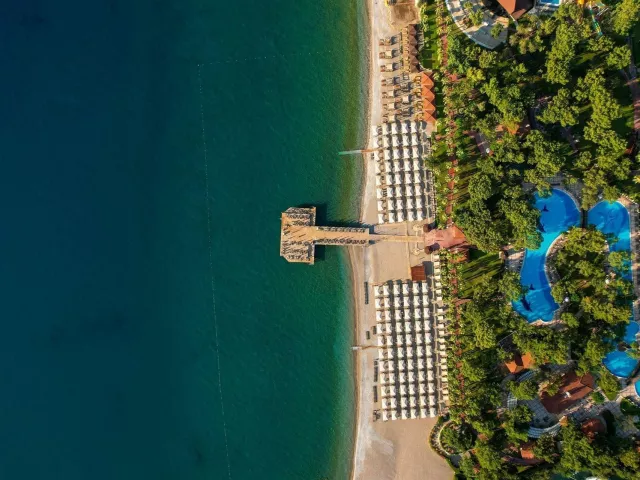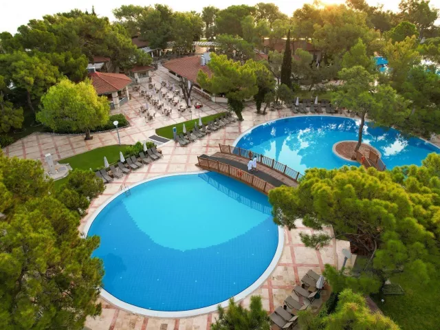 Hotel sa rozprestiera na rozlohe 90 000 m² a pozostáva z dvoch štvorpodlažných hlavných budov, rodinného bloku a siedmich víl. K dispozícii sú rôzne zariadenia, ako sú vonkajšie a vnútorné bazény, aquapark, šmykľavky, fitness centrum, amfiteáter, heterogénne reštaurácie a bary, ako aj wellness služby vrátane sauny a tureckého kúpeľa.