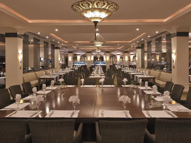 Hotel ponúka koncept ultra all inclusive, ktorý zahrnuje raňajky, obedy a večere formou bufetu s bohatou ponukou. K dispozícii sú rôzne snacky, zmrzlina a nápoje, vrátane miestnych a vybraných importovaných alkoholických a nealkoholických nápojov. Pre náročnejších sú dostupné á la carte reštaurácie, avšak s potrebou vopred rezervovať.