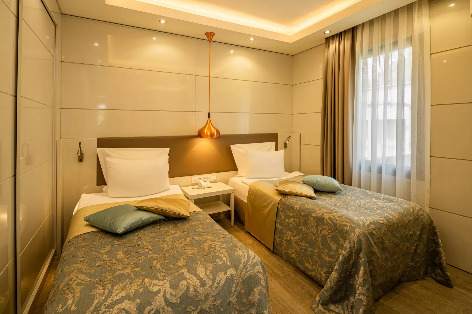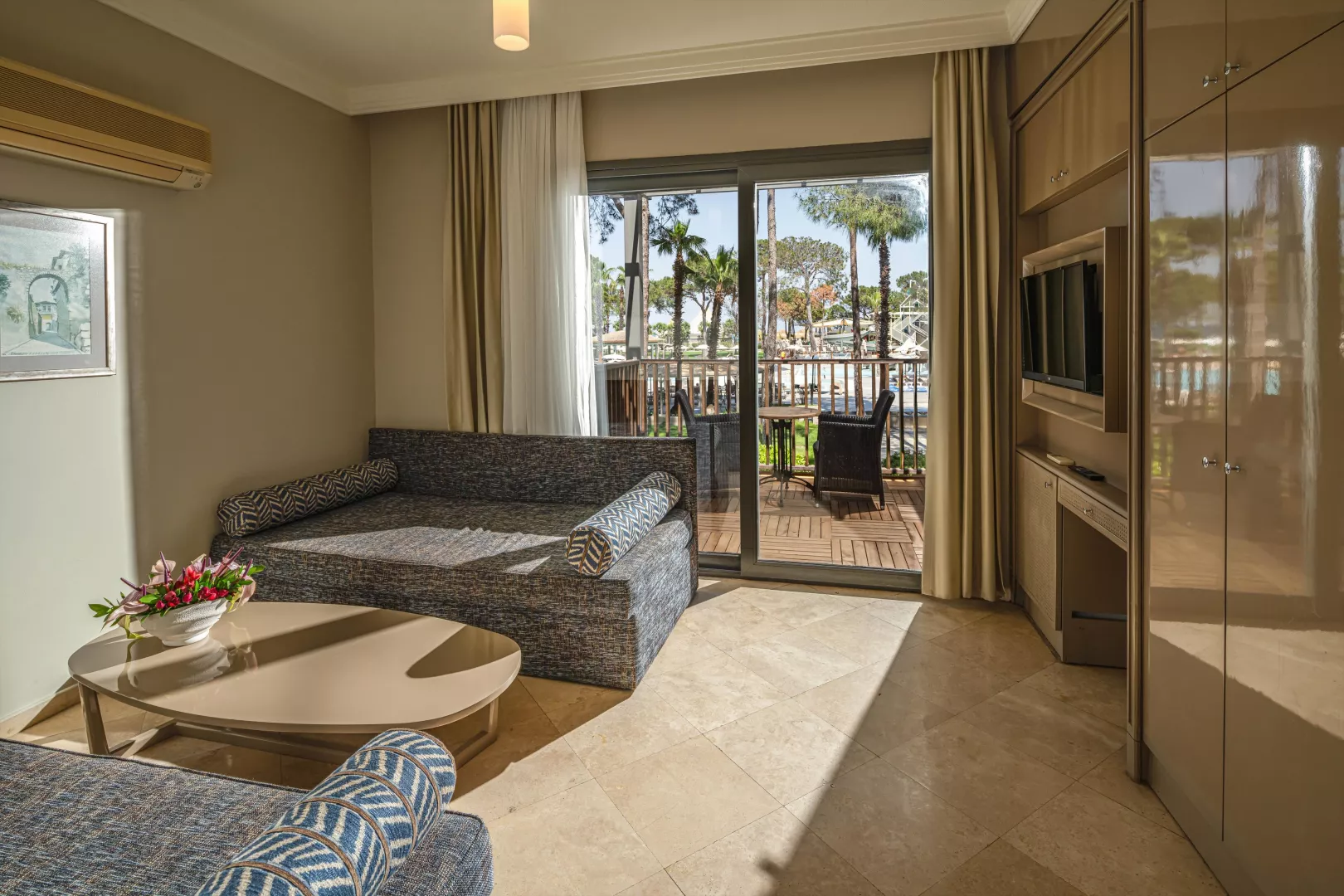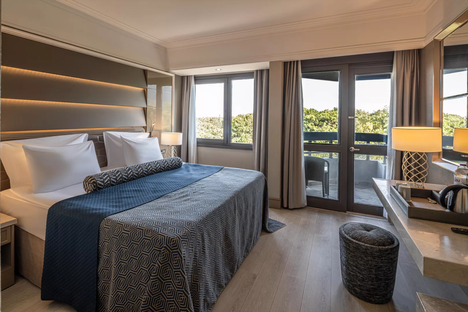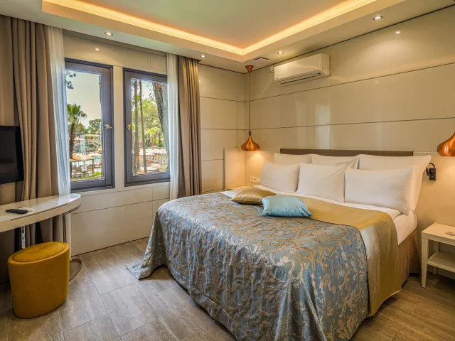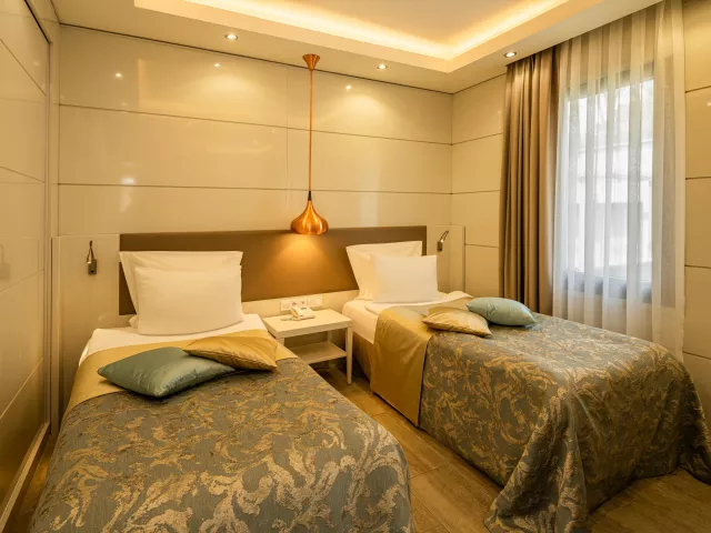Izby sú klimatizované a vybavené TV/sat., minibarom (doplňovaným denne), trezorom (zdarma), Wifi (zdarma), telefónom a balkónom alebo terasou. K dispozícii sú rôzne typy izieb ako Junior Suite, Rodinná Suita a Vila Duplex s väčšími rozmermi a extra vybavením.