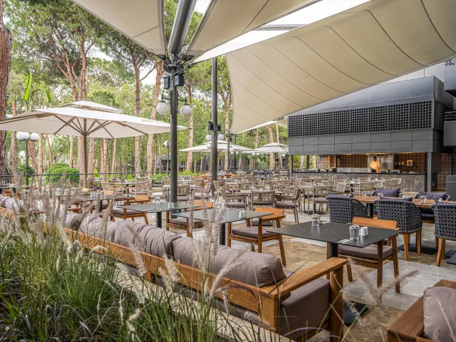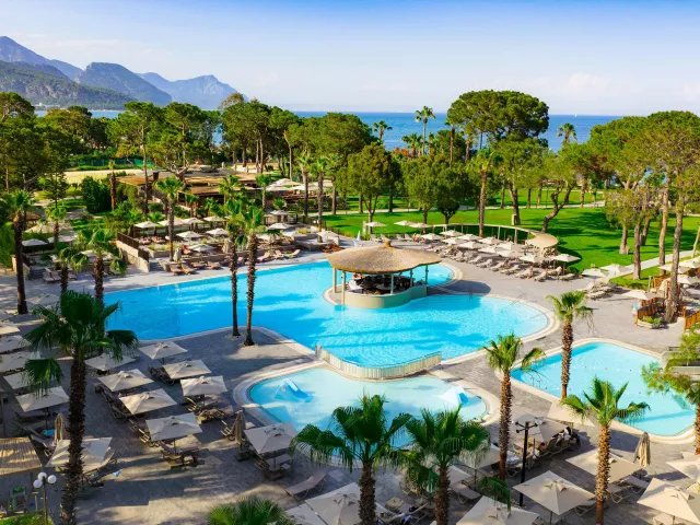 V hoteli sa nachádza celkom 346 izieb, 4 panoramatické výťahy a vstupná hala s recepciou. Súčasťou areálu je hlavná reštaurácia a 5 Á la Carte reštaurácií (medzinárodná, rybia, turecká, za poplatok steakhouse a kuchyňa blízkeho východu). Disponuje aj 6 barmi, 5 vonkajšími bazénmi, detským bazénom, aquaparkom a vnútorným bazénom. Služby zahŕňajú aj kaderníka, zmenáreň, parkovisko a služby práčovne (za poplatok). Bezplatné Wifi pripojenie je k dispozícii vo verejných priestoroch hotela.