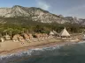 Piesočnato-kamienková pláž sa nachádza priamo pri hoteli. Lehátka, slnečníky a osušky sú k dispozícii zdarma. Bar na pláži je súčasťou programu ultra all inclusive a pavilóny sú za poplatok.