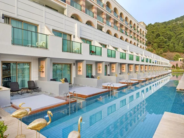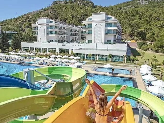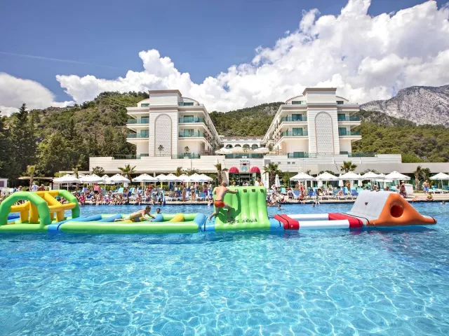cca 10 km od mesta Kemer. Nákupné možnosti dostupné v okolí hotela. Letisko Antalya vzdialené 45 km.
