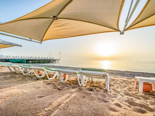 Hotel disponuje krásnou súkromnou plážou s pozvoľným vstupom do mora, poskytuje plážový servis zahŕňajúci slnečníky a lehátka zdarma. K dispozícii je aj plážový bar a mólo.