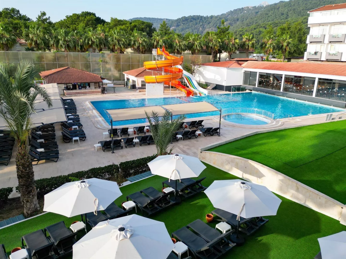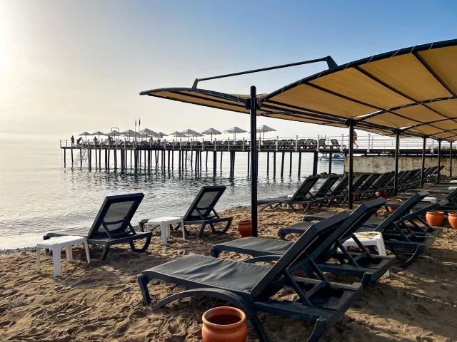 Transatlantik Beach Hotel sa nachádza priamo pri pláži, čo umožňuje jednoduchý prístup k slneniu a kúpanie v Stredozemnom mori. K dispozícii sú aj rôzne vonkajšie aktivity, ako napríklad vodné športy či beachvolleyball.