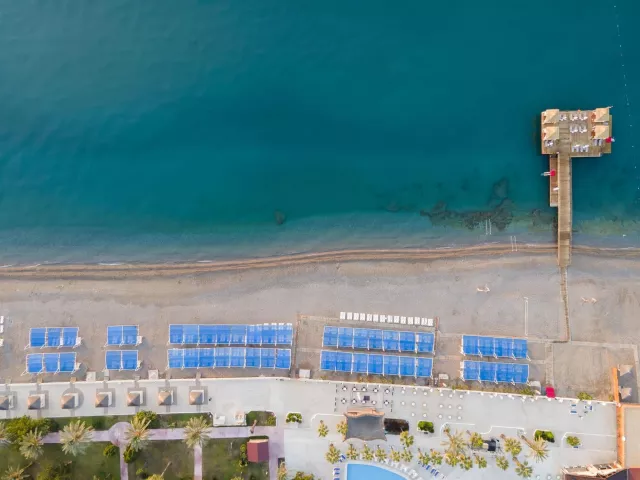 Pri hoteli sa nachádza súkromná piesočnato-kamienková pláž. K dispozícii sú ležadlá, slnečníky a plážové osušky bez poplatku. Na pláži je mólo a plážové pavilóny sú za príplatok.