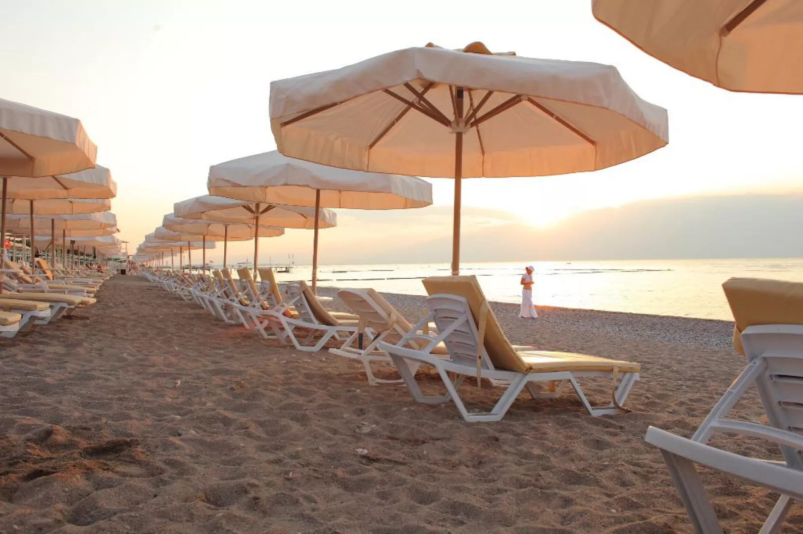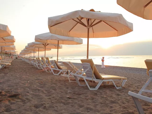 Priamo pri hoteli sa nachádza vlastná piesočnato-kamienková pláž, ktorá je 200 m vzdialená cez cestu. Na pláži sú k dispozícii ležadlá, slnečníky, matrace a plážové osušky zdarma. Doplnené sú sprchami a kabínkami na prezliekanie. K dispozícii je plážový bar, kde si môžete objednať alkoholické a nealkoholické nápoje.