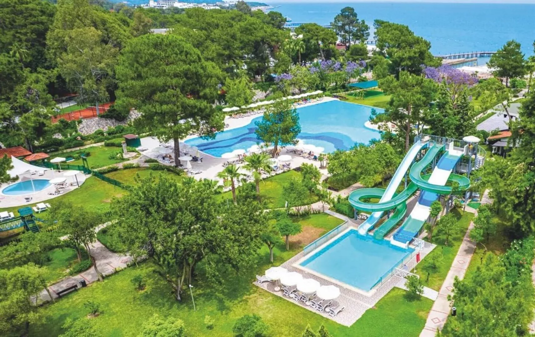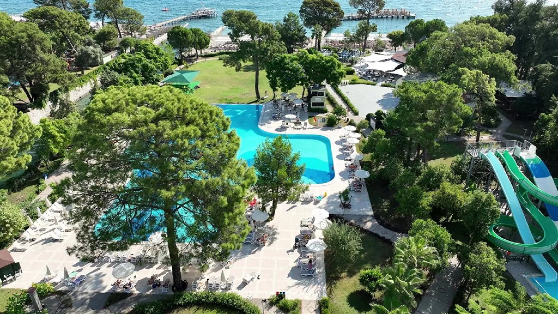 Zelený areál hotelového komplexu sa nachádza priamo na piesočnatej pláži, premiešanej drobnými kamienkami, pričom pri vstupe do mora sú okruhliaky. Je situovaný v známom stredisku Göynük, cca 2,5 km od nákupných možností a 4 km od centra mesta Kemer, ktoré je dostupné miestnou dopravou. Medzinárodné letisko v Antalyi je vzdialené 46 km.