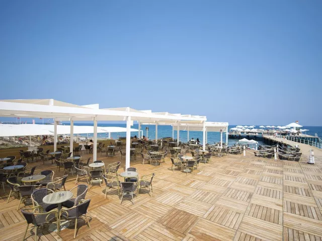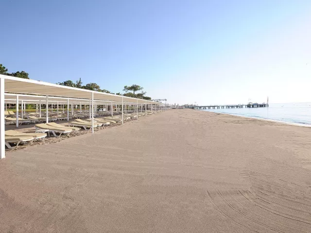 Piesočnato-kamienková pláž s hotelovým mólom ponúka plážový servis zadarmo vrátane lehátok a slnečníkov. V plážovom bare sú k dispozícii nápoje v rámci Ultra All Inclusive.