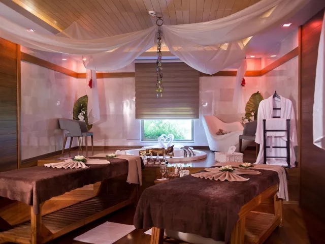 Hotel má 542 izieb s vybavením, ako sú recepcia, hlavná reštaurácia, 5 á la carte reštaurácií (talianska, rybia, turecká, mexická, orientálna, nutná rezervácia), 4 bary, 3 bazény (s bezplatnými lehátkami a slnečníkmi), krytý bazén, detský bazén, aquapark s 5 šmykľavkami, amfiteáter a diskotéku.