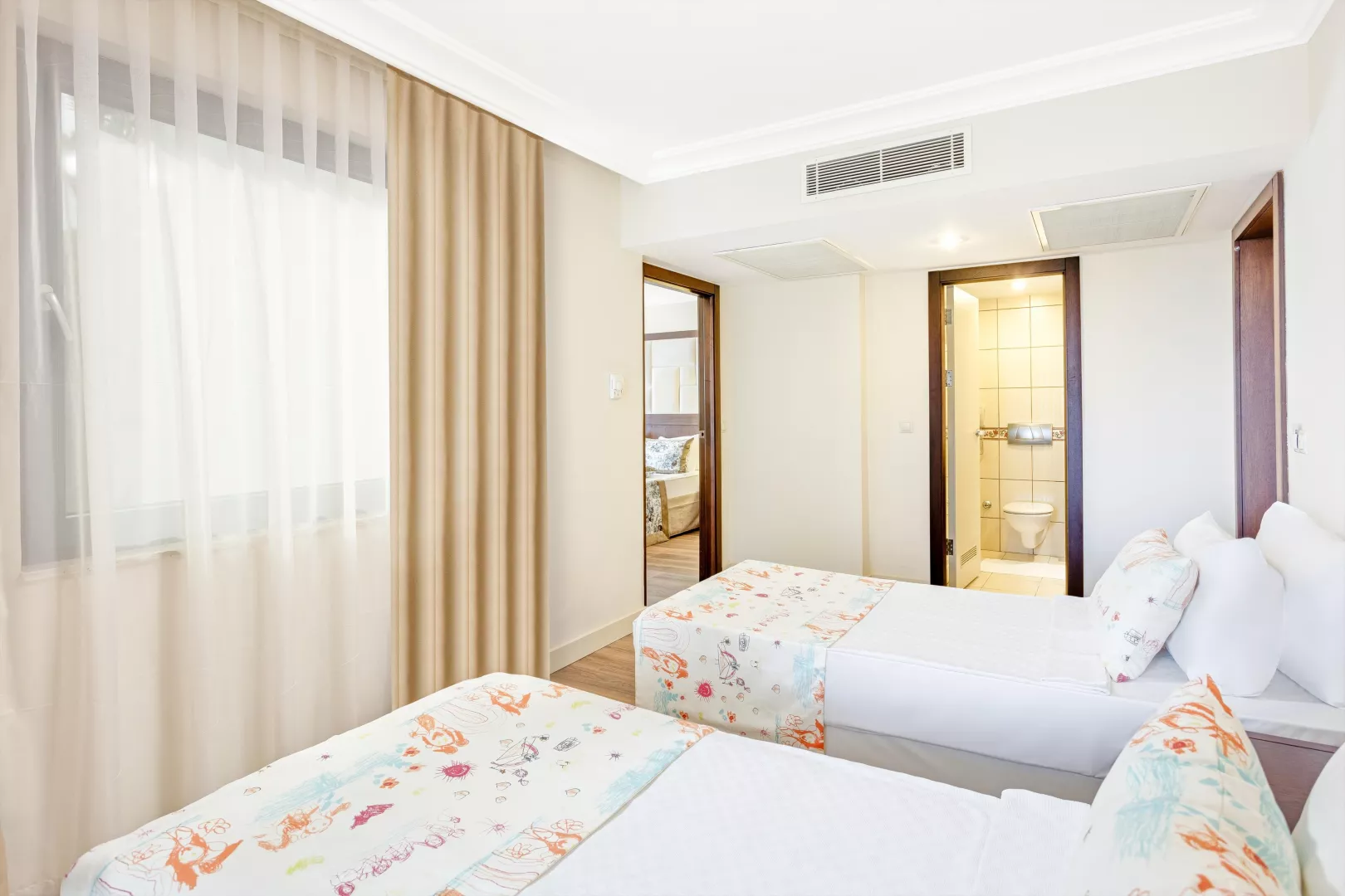 Izby sú moderne zariadené a každá má klimatizáciu, minibar, trezor, TV/SAT a balkón alebo terasu. Ponuka izieb obsahuje aj rodinné izby a superior izby s oddelenou spálňou. Izby sú orientované na more alebo do záhrady.