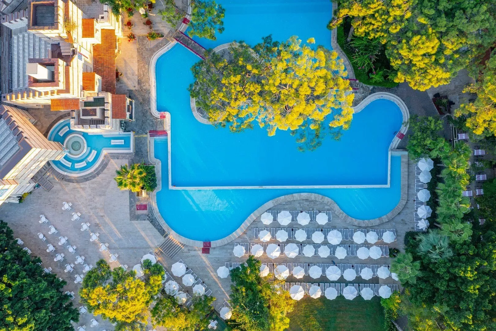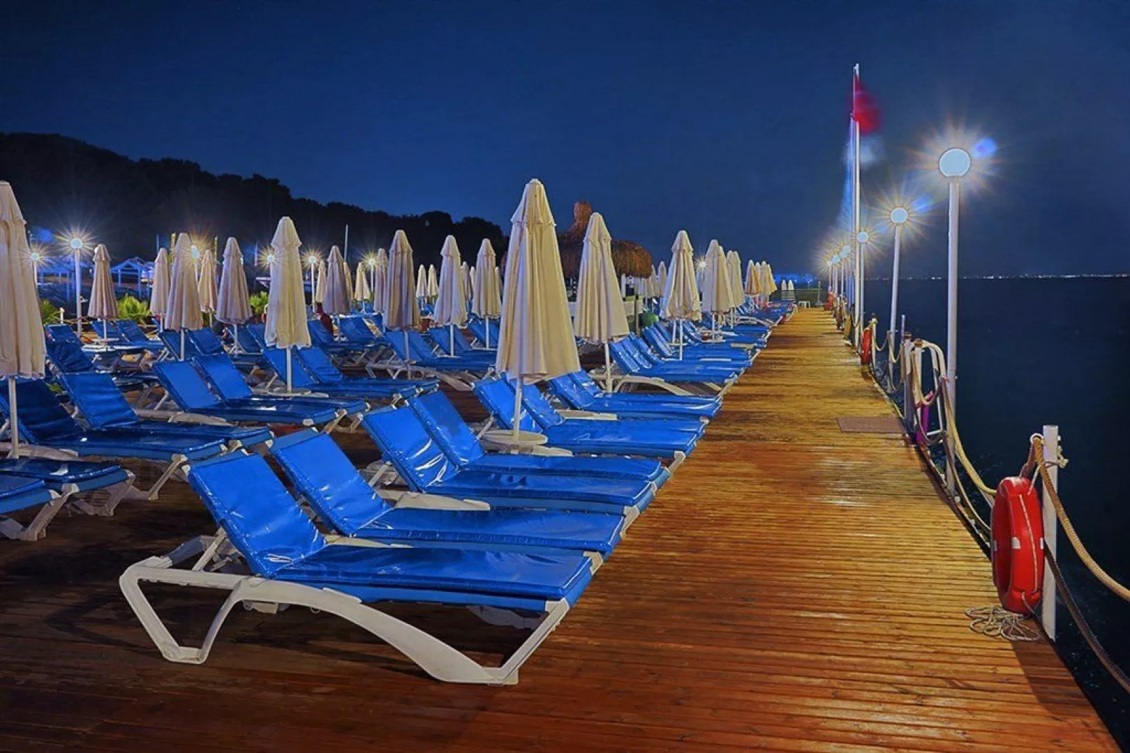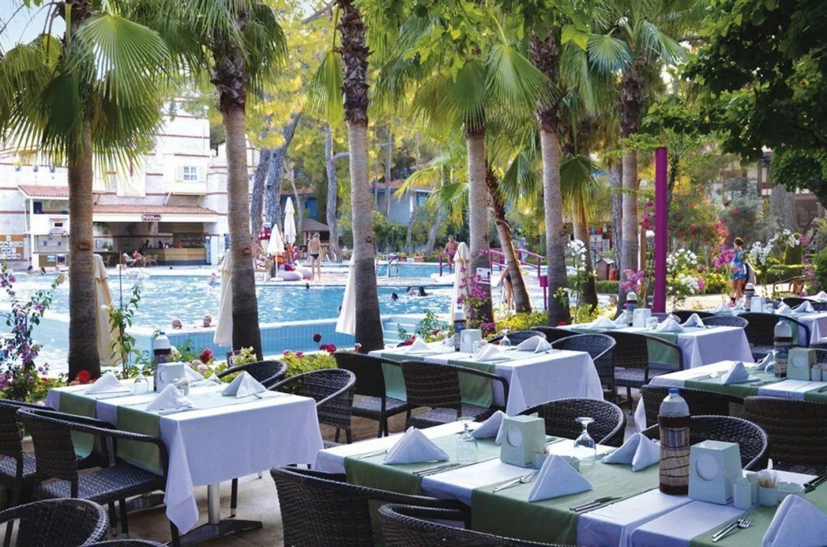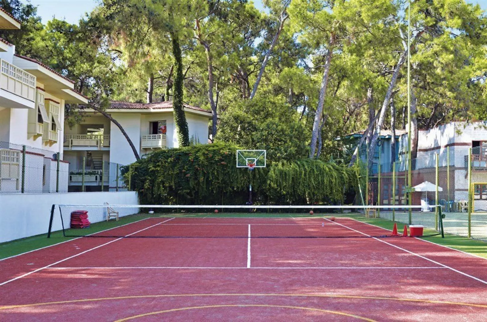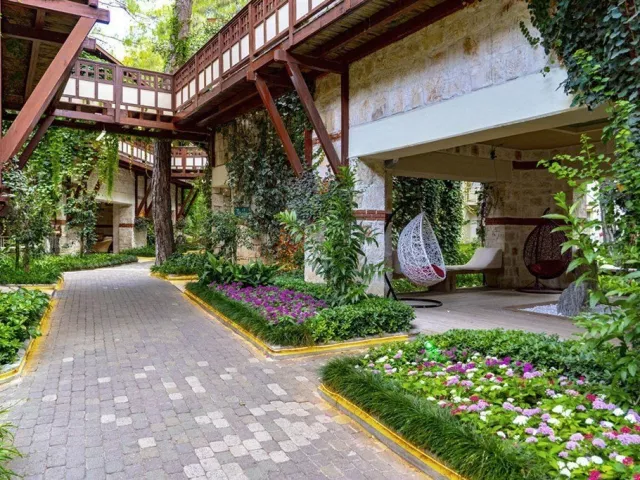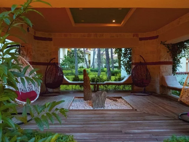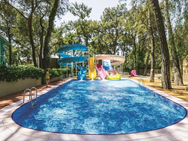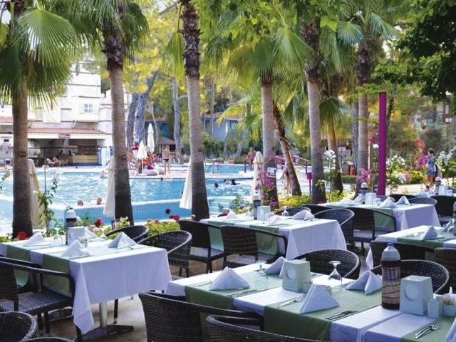 Vybavenie hotela zahŕňa recepciu s 24-hodinovým servisom, hlavné reštaurácie a 5 barov, vrátane baru pri bazéne. Zákazníci majú k dispozícii aj WiFi zdarma, minimarket a butiky. K dispozícii je vonkajší bazén, relaxačný bazén a detský bazén so šmykľavkami. Na pláži sú zdarma lehátka, slnečníky a osušky, zatiaľ čo požičovne áut a bicyklov, lekárske služby, práčovňa a kaderníctvo sú za poplatok. Akceptované sú platobné karty Visa a MasterCard. Rozmanité športové aktivity ponúkajú tenisové kurty (osvetlenie za poplatok), stolný tenis, volejbal, šípky, aerobik a fitness. K dispozícii sú aj animačné programy 6-krát týždenne a večerné predstavenia. Milovníci vodných športov si môžu užiť vodné aktivity na pláži, zatiaľ čo relaxáciu ponúka hammam a sauna. Spa centrum poskytuje masáže a kozmetické procedúry za poplatok.