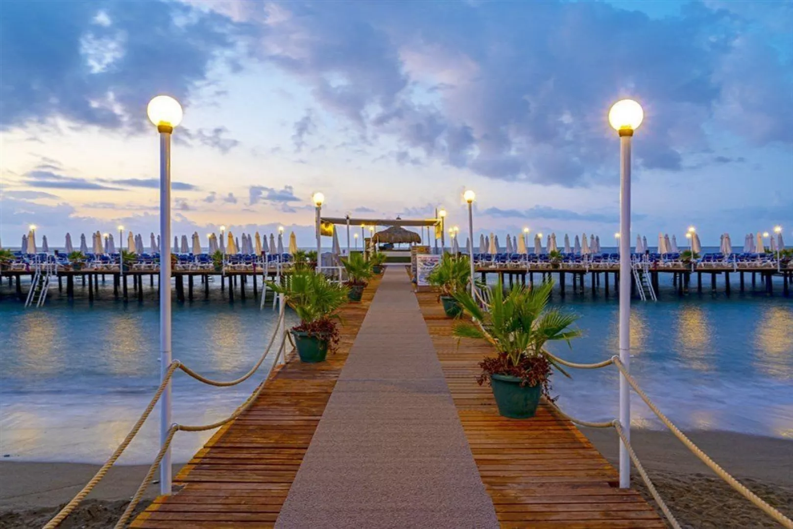 Hotel disponuje okruhliakovo-piesočnatou plážou, pričom vstup do mora je možný aj z móla. Na pláži sú slnečníky, lehátka a osušky dostupné zdarma. Hostia môžu využiť aj plážový bar v rámci Ultra all inclusive ponuky.