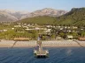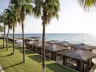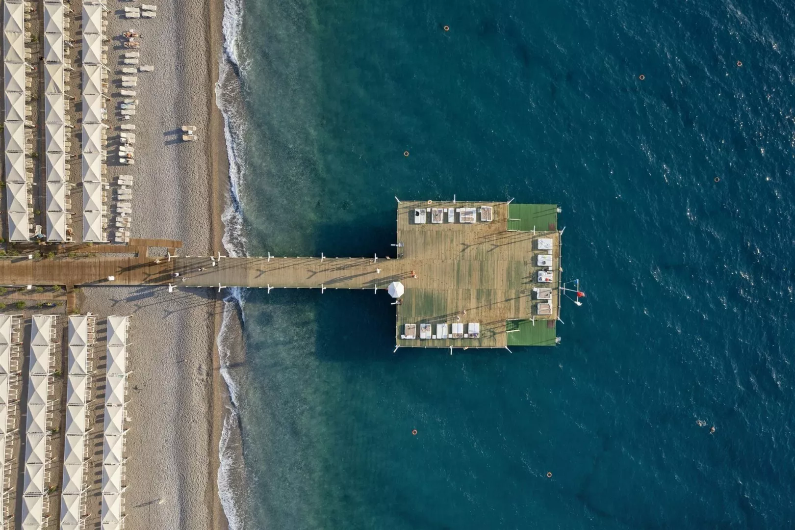 Súkromná piesočnato-kamienková pláž leží priamo pri hoteli, vzdialená len 150 metrov. Pláž sa rozprestiera na 400 metroch a ponúka bezplatné ležadlá, slnečníky a plážové osušky. Vstup do mora je cez malé kamienky s príjemným mólom a dostupné sú aj zóny pre nevidiacich a vyhradené pavilóny za poplatok.