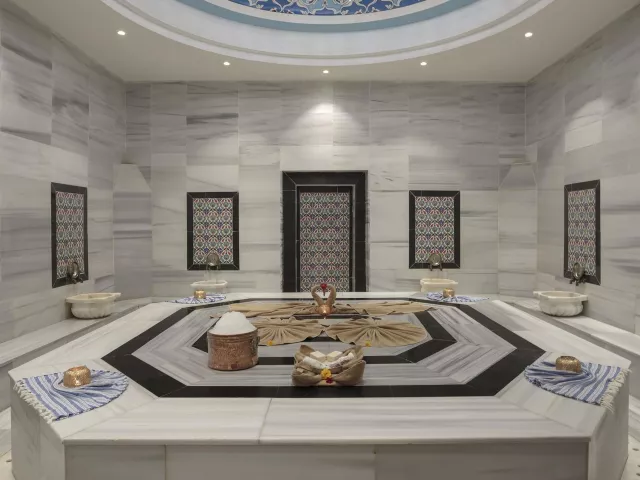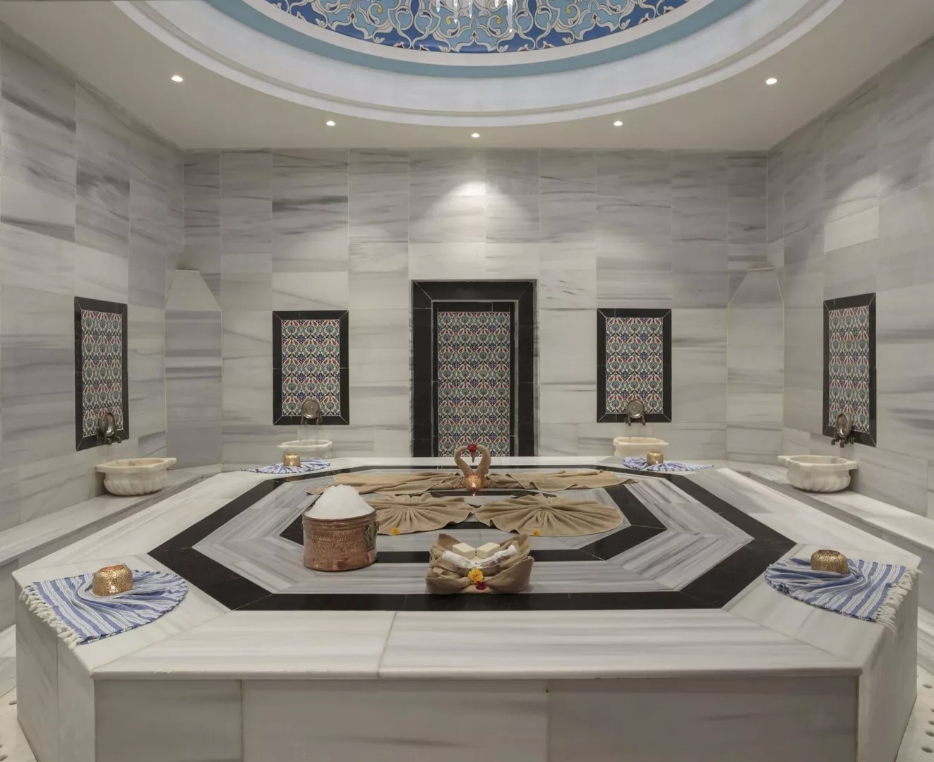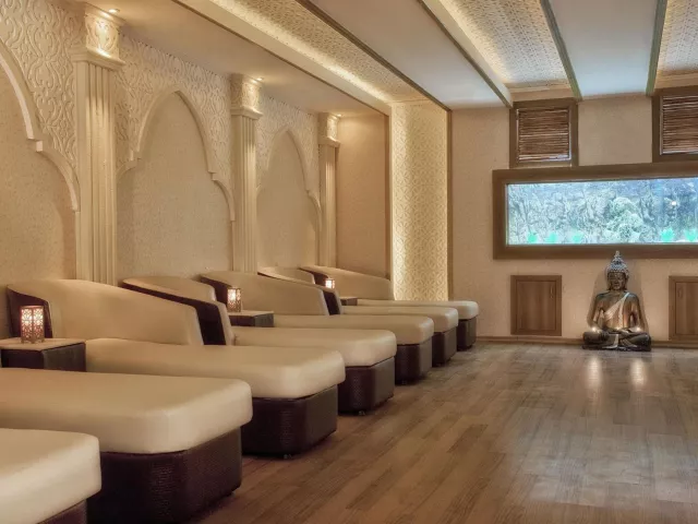 V hoteli sú rôzne bazény, vrátane vnútorného a relaxačného bazénu s toboganmi. Hostia môžu vychutnať wellness služby, ako sú masáže a turecký kúpeľ, a množstvo aktivít, ako je tenis, aqua aerobik a džez. K dispozícii sú aj konferenčné miestnosti a rôzne bary a reštaurácie.