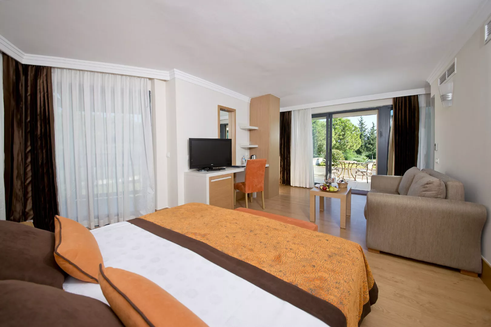 Medzi hlavné vybavenie patrí 4 bazény, krytý bazén, SPA centrum so saunou a tureckými kúpeľmi, fitnes centrum, tenisové kurty a animácie pre deti i dospelých. K dispozícii sú aj podujatia v amfiteátri a diskotéka pre zábavu.