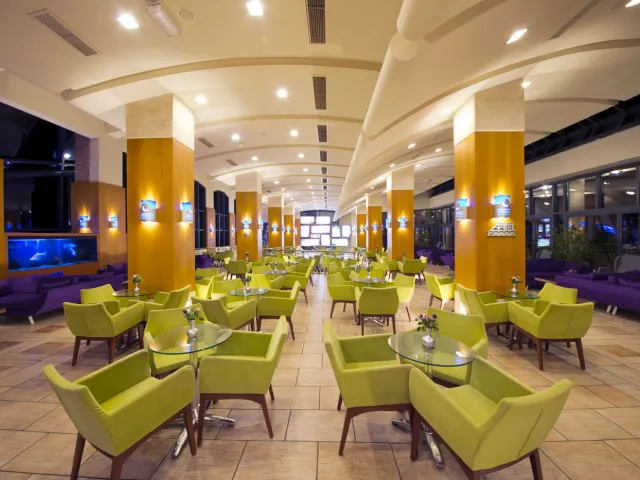 Komplex pozostáva z hlavnej budovy a viacerých vedľajších pavilónov umiestnených v subtropických záhradách. Hotelová infraštruktúra zahŕňa vstupnú halu s recepciou, výťahy, hlavnú reštauráciu, 5 reštaurácií à la carte (turecká, talianska, čínska, gril, rybia), niekoľko barov a obchodnú arkádu. K dispozícii je aquapark s 6 šmykľavkami a 4 vonkajšie bazény s terasou na slnenie, kde sú lehátka, slnečníky a osušky zdarma.