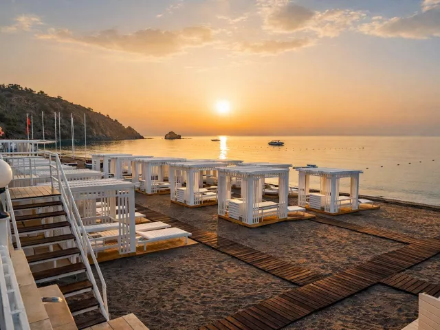 Hotel má súkromnú pláž so zmesou piesku a kamienkov priamo pri areáli hotela. Slnečníky, ležadlá a plážové osušky sú k dispozícii bezplatne.
