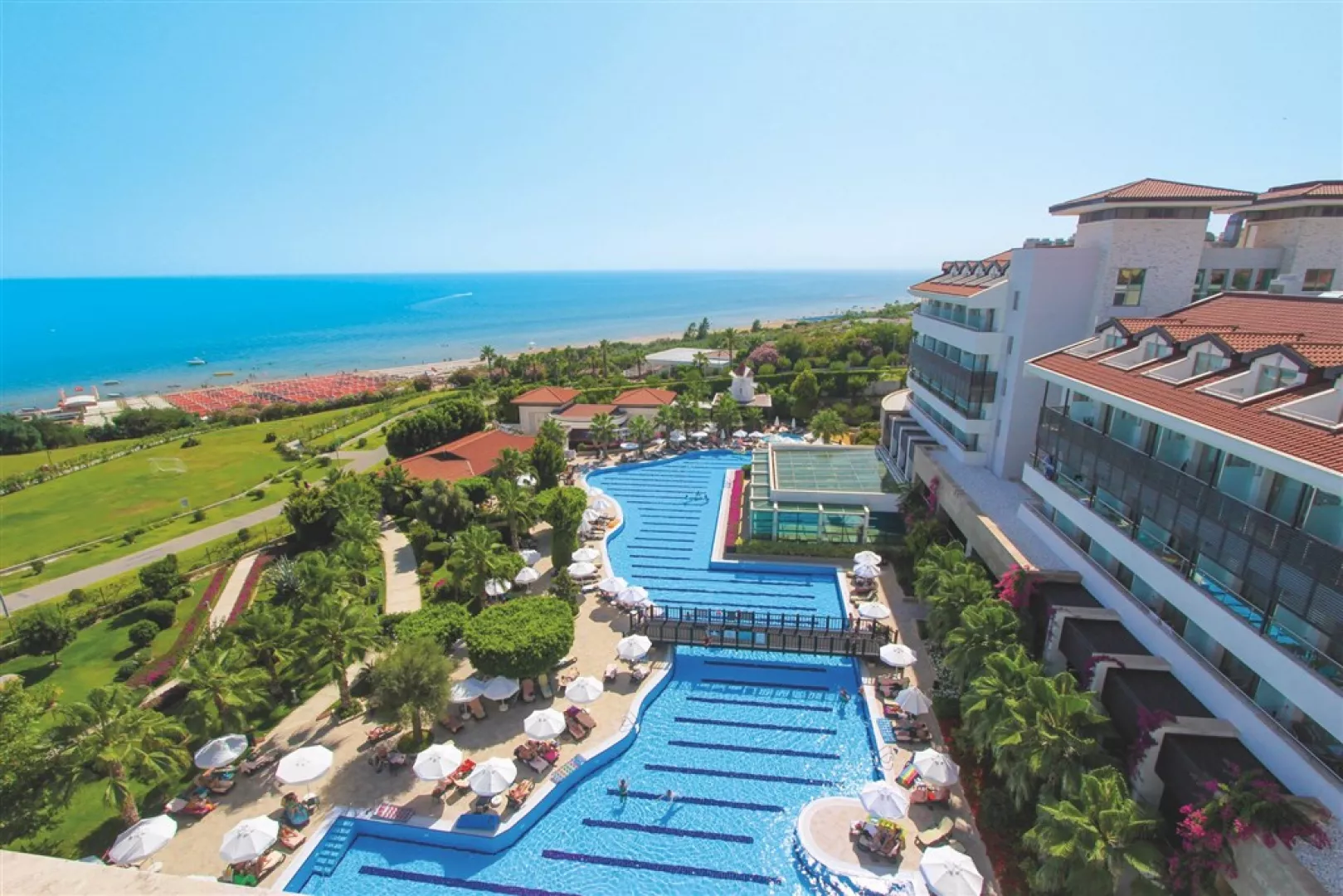 Hotel poskytuje vstupnú halu s recepciou, dve hlavné reštaurácie s posedením na terase, a tri á la carte reštaurácie (turecká, kubánska, rybia - nutná rezervácia vopred). K dispozícii sú aj plážový bar, päť barov a kaviareň. V areáli sa nachádza vonkajší bazénový komplex, vnútorný bazén, beauty centrum a kaderníctvo (za poplatok), sauna a wellness centrum s masážami a tureckými kúpeľmi (tiež za poplatok). Pre aktívnych hostí sú k dispozícii fitness centrum, aerobik, zumba, gymnastika, šípky, boccia, stolný tenis, bowling a biliard (za poplatok), herňa, minigolf a plážový volejbal. Nechýba ani ponuka vodných športov na pláži (za poplatok), nákupná zóna, amfiteáter, disco a medzinárodné hotelové animácie s večerným programom. Wifi je dostupné v spoločných priestoroch a na pláži zdarma.