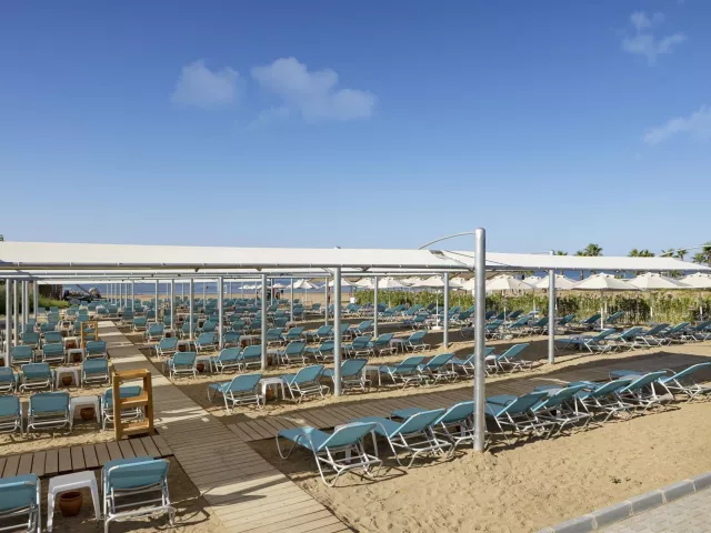 Súkromná piesočnatá pláž sa nachádza len 800 metrov od hotela. Na pláž premáva každých 10 minút bezplatná kyvadlová doprava. K dispozícii sú ležadlá, slnečníky a plážové osušky bez poplatku. Na pláži sa nachádza sprcha, reštaurácia a plážový bar.