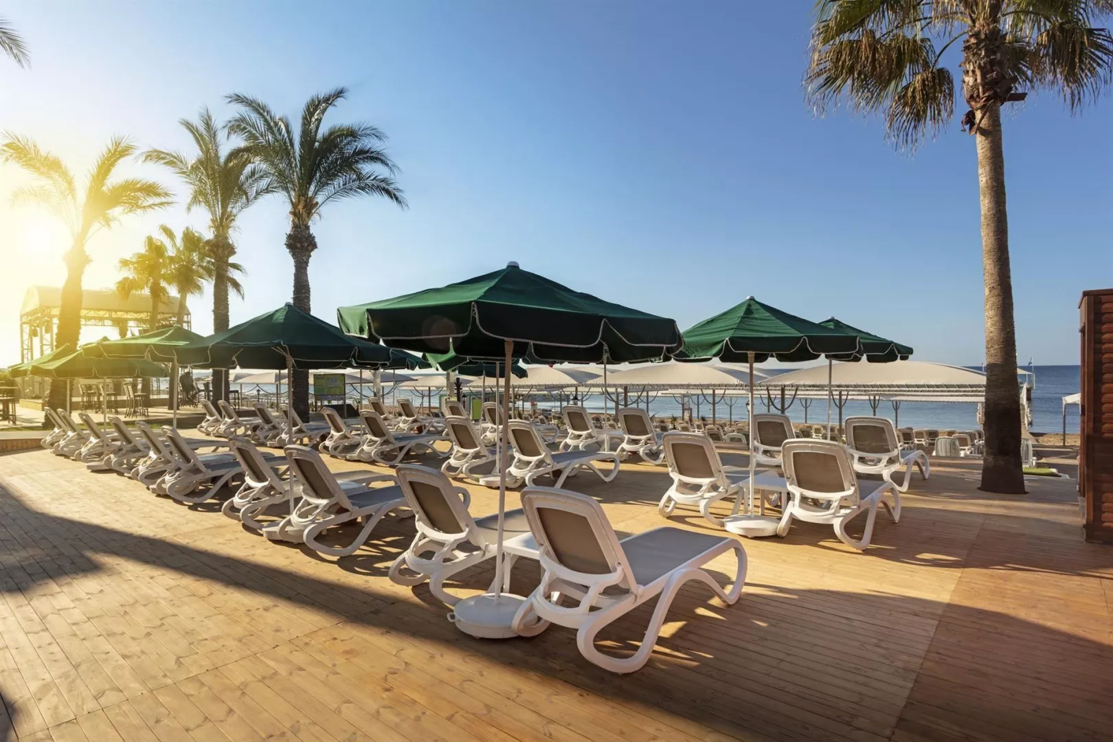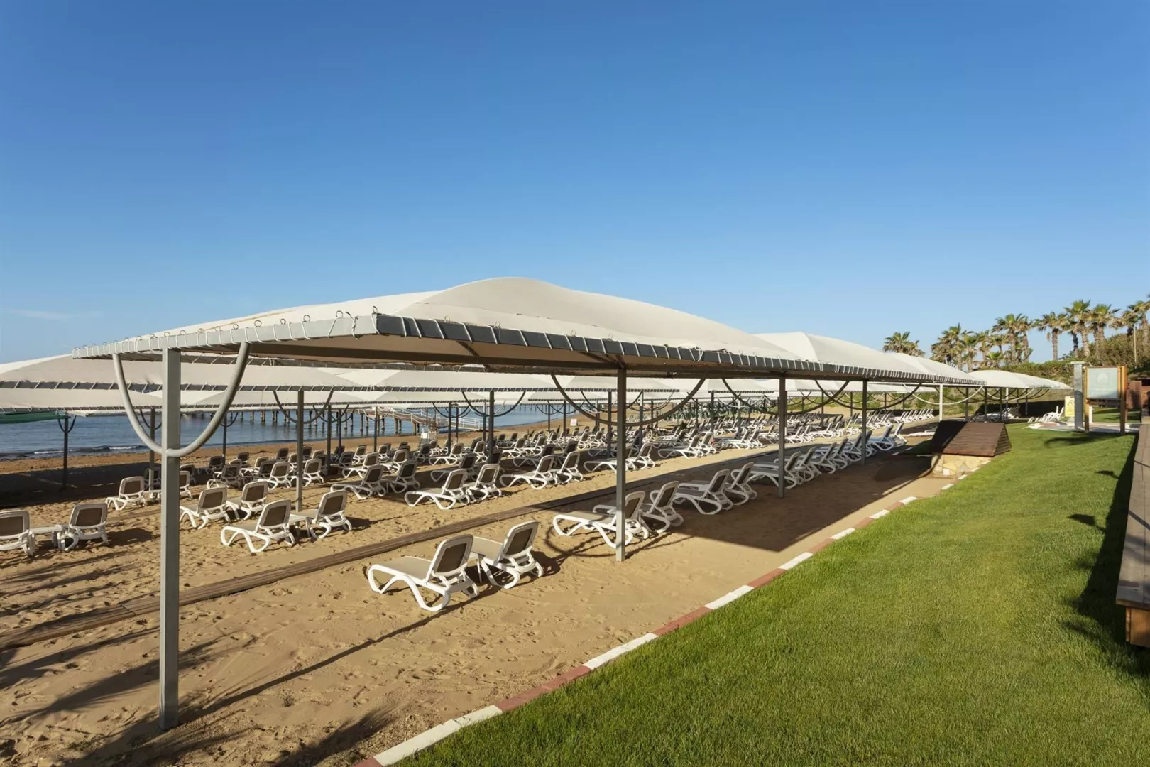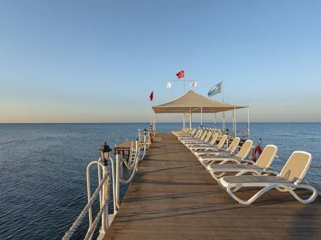 Hotel má vlastnú piesočnatú pláž s dĺžkou 100 m, ocenenou modrou vlajkou, s pozvoľným vstupom do mora. V plážovom servise sú poskytované ležadlá, slnečníky a plážové osušky zdarma. K dispozícii je tiež mólo, sprcha a prezliekacie kabínky.