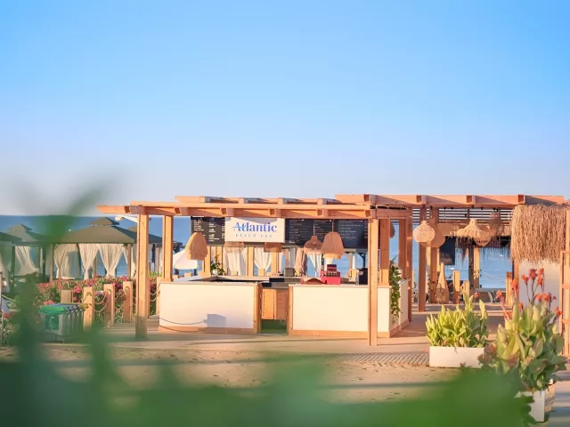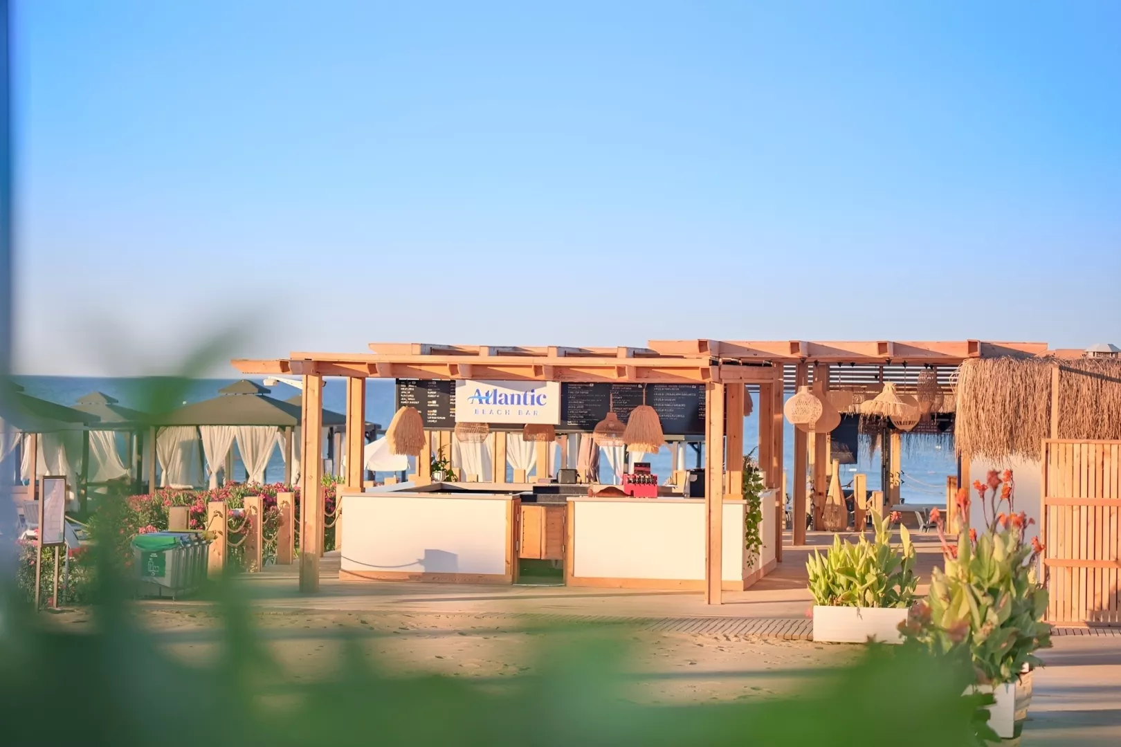 piesočnatá s pozvoľným vstupom ležadlá, slnečníky a plážové osušky zadarmo bar na pláži