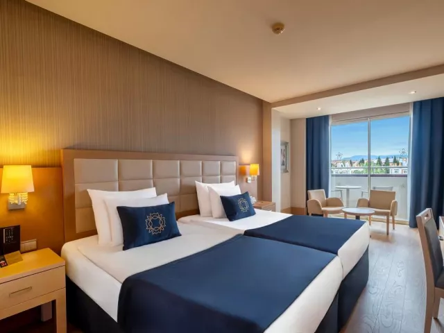Výnimočný hotel je súčasťou komplexu Kamelya Collection a leží priamo pri nádhernej širokej piesočnatej pláži s pozvoľným vstupom do mora. Môžete využívať všetky služby komplexu, vrátane množstva reštaurácií, bazénov, barov a aquaparku. Vzhľadom na vysokú úroveň služieb a množstvo aktivít, má hotel vysoké percento stálych návštevníkov.