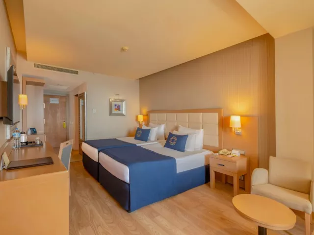 Izby sú vybavené klimatizáciou, telefónom, SAT-TV, minibarem, trezorom, rýchlovarnou kanvicou, kúpeľňou (vaňa alebo sprchovací kút) a balkónom alebo terasou. V ponuke sú aj deluxe izby, rodinné izby a izby s bočným výhľadom na more.