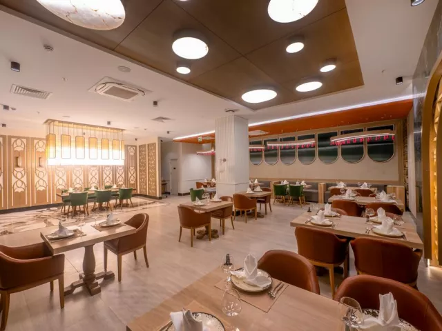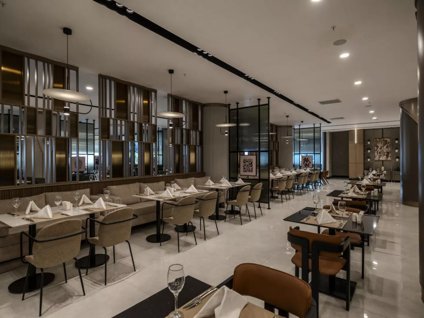 V hoteli je k dispozícii ultra all inclusive stravovanie, ktoré zahŕňa raňajky, obedy a večere formou bufetu, neskoré raňajky, diétne menu, snacky ako gözleme, zmrzlinu, kávu a čaj so zákuskami. Hostia si môžu vychutnať miestne a niektoré importované alkoholické a nealkoholické nápoje. Na požiadanie sú k dispozícii aj á la carte reštaurácie, pričom rezervácia je nutná vopred, a izbová služba.