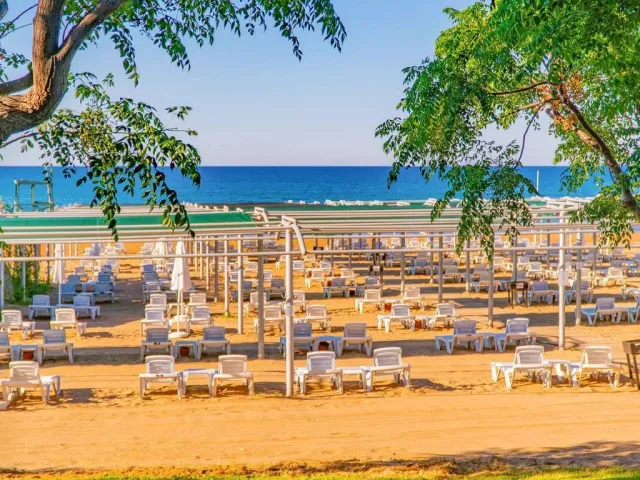 Piesočná pláž sa nachádza priamo pri hoteli. K dispozícii sú ležadlá, slnečníky a plážové osušky bez poplatku.