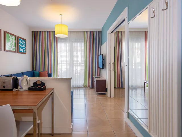 V hoteli je 254 moderných izieb vrátane junior suít a suít, vybavených balkónom, klimatizáciou, TV, trezorom a Wi-Fi zdarma. Izby majú vlastné kúpeľne so sprchou a sušičom na vlasy, s možnosťou prísteliek pre rodiny s deťmi.