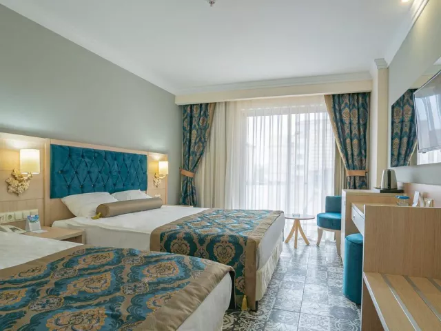 Hotel disponuje 500 izbami. Všetky izby sú vybavené centrálnou klimatizáciou, sušičom na vlasy, SAT TV, minibarom a wifi. K dispozícii sú štandardné izby rôznych veľkostí (22 m², 25 m²), rodinné izby s dvoma spálňami (38 m²) a ekonomické izby bez balkóna. Trezor a telefón sú za poplatok.