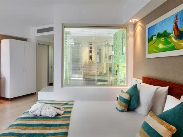Ubytovanie ponúka moderné dvojlôžkové izby s možnosťou prístelky, ako aj priestranné rodinné izby so 2 miestnosťami a superior izby za príplatok. Vybavenie izieb zahŕňa kúpeľňu s WC a sušičom na vlasy, župan, televíziu, klimatizáciu, telefón, set na prípravu kávy a čaju, trezor, denný minibar a balkón.