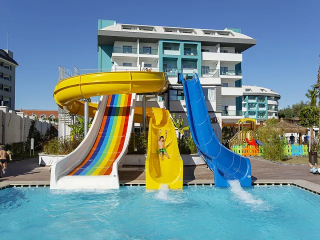 Hotel disponuje 283 izbami a ponúka množstvo služieb: vstupnú halu s recepciou, Wi-Fi (v spoločných priestoroch zdarma), hlavnú reštauráciu, 3 a la carte reštaurácie (jedna večera v á la carte reštaurácii je raz za pobyt zdarma), niekoľko barov, bazén, detský bazén a bazén so šmýkačkami. Pre aktívnych sú k dispozícii fitness, wellness centrum a denné a večerné animácie. Za poplatok sú dostupné služby kaderníka, vitamin bar, doktor a procedúry wellness centra.