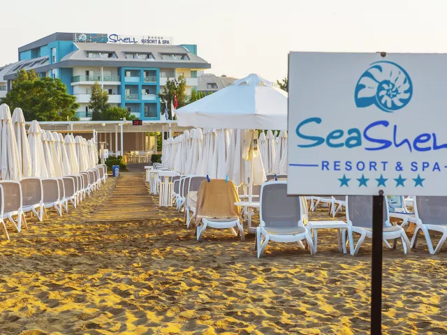 Hotel Seashell Resort & Spa sa nachádza v stredisku Side v časti Evrenseki, priamo na krásnej piesočnatej pláži s pozvoľným vstupom do mora, čo je ideálne najmä pre rodiny s deťmi. Počas letnej sezóny sa môžete tešiť na zábavu od našich animátorov. Nezabudnite si užiť aj dlhé prechádzky po promenáde, ktorá je hneď pri hoteli.