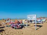 Piesočnatá pláž je ocenená modrou vlajkou, ktorá zaisťuje vysokú kvalitu a čistotu vody. K dispozícii sú ležadlá, slnečníky a plážový servis zdarma. Pozvoľný vstup do mora je ideálny pre rodiny s deťmi a neplavcov.