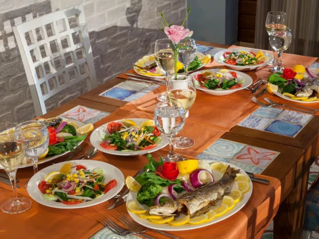 Stravovací koncept all inclusive zahŕňa raňajky, obedy a večere formou bufetových stolov, neskoré raňajky, občerstvenie a široký výber miestnych alkoholických a nealkoholických nápojov. K dispozícii sú tiež tematické á la carte reštaurácie za poplatok.