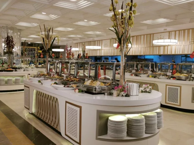 Ultra all inclusive program zahŕňa raňajky, obedy a večere formou bufetu, odpoludňajšie občerstvenie, zákusky, zmrzlinu, kávu, čaj a nočné občerstvenie v určených časoch. Je možné si rezervovať večeru v á la carte reštaurácii raz za pobyt.