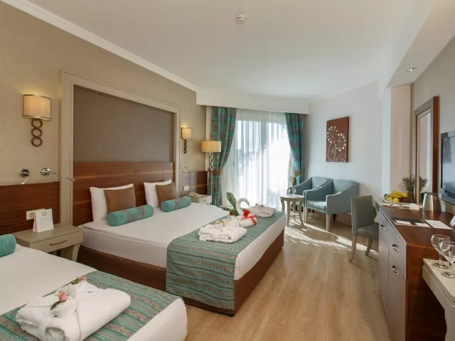 Hotel ponúka elegantné a moderné prostredie s kapacitou 422 izieb rozložených vo dvoch budovách, ktoré boli čiastočne zrekonštruované v roku 2018. Medzi vybavenie patrí priestranná vstupná hala, 24-hodinová recepcia, hlavná reštaurácia s bufetovými jedlami, á la carte reštaurácie so špecialitami tureckej a talianskej kuchyne, bar pri bazéne, snack bar na pláži, lobby bar a cukráreň. Relaxovať je možné pri vonkajšom bazéne, bazéne s tobogánmi a v relaxačnom bazéne. Hotel má tiež konferenčné centrum s kapacitou až 800 osôb a bezplatné WiFi v spoločných priestoroch.