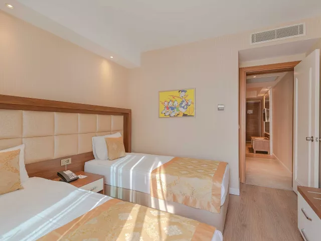 Dvojlôžkové izby sú vybavené centrálnou klimatizáciou, telefónom, TV so satelitným pripojením, minibarm (doplňovaný denne), trezorom (zadarmo), Wi-Fi (zadarmo) a setom na prípravu kávy/čaju. Kúpeľňa obsahuje WC a sušič vlasov. K dispozícii sú aj rodinné izby s dvoma oddelenými spálňami a ďalšie varianty izieb, ako sú izby s výhľadom na more alebo bazén.