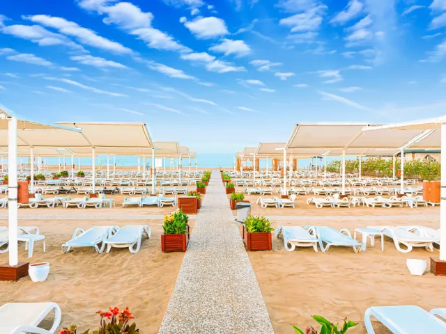 Piesočná pláž ponúka lehátka a slnečníky zdarma. Na pláži je bar, ktorý patrí do programu Ultra All Inclusive.