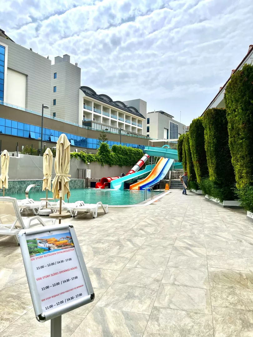 Novootvorený hotel Side Story Hotel & Spa sa nachádza v populárnom letovisku Side, v časti Evrenseki, len pár krokov od piesočnatej pláže. Pozdĺž pláže vedie krásna pešia promenáda. V okolí sa nachádza množstvo obchodov s lákavým tovarom. Pláž je vzdialená 120 m, centrum Side 5 km a nákupné možnosti 300 m.