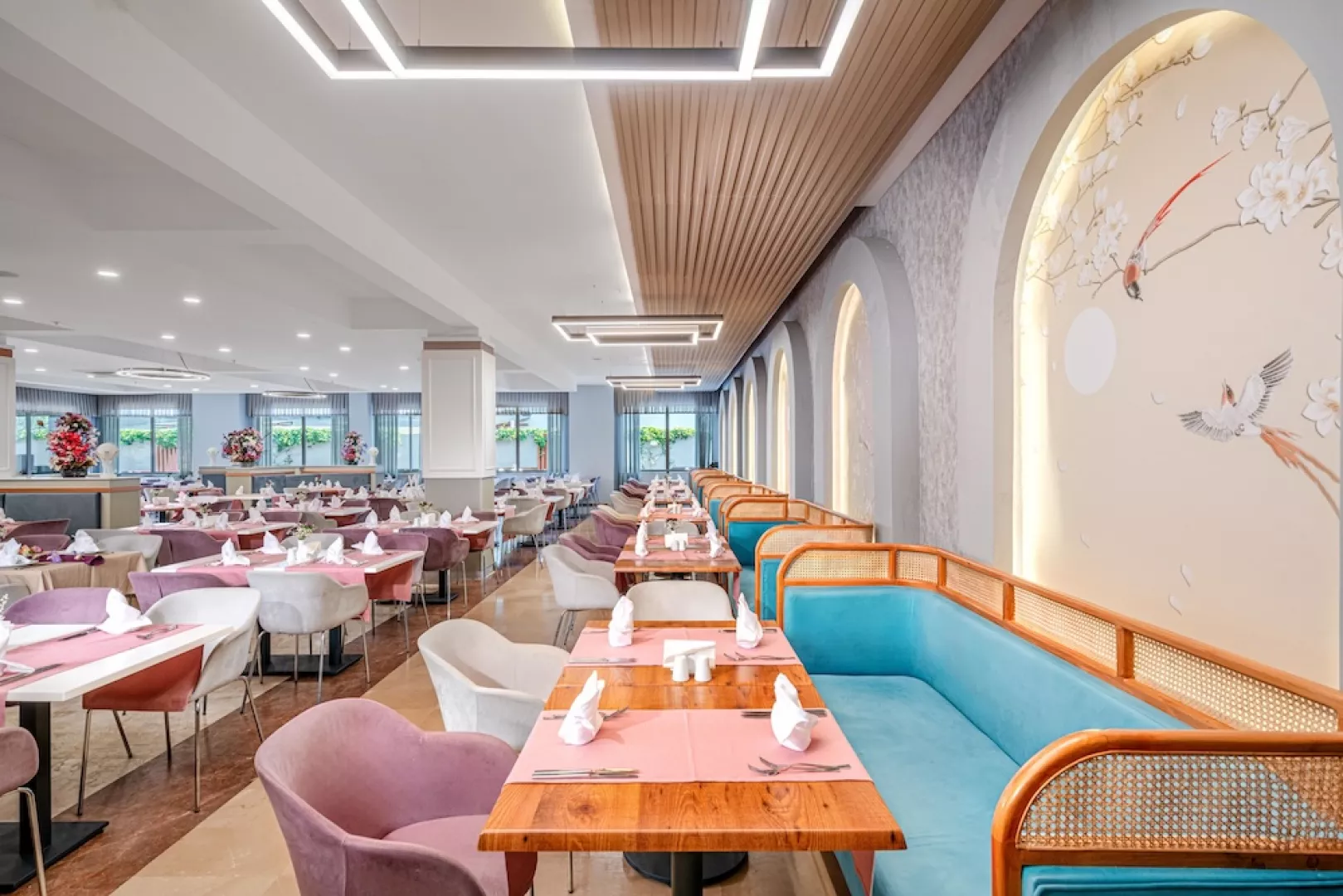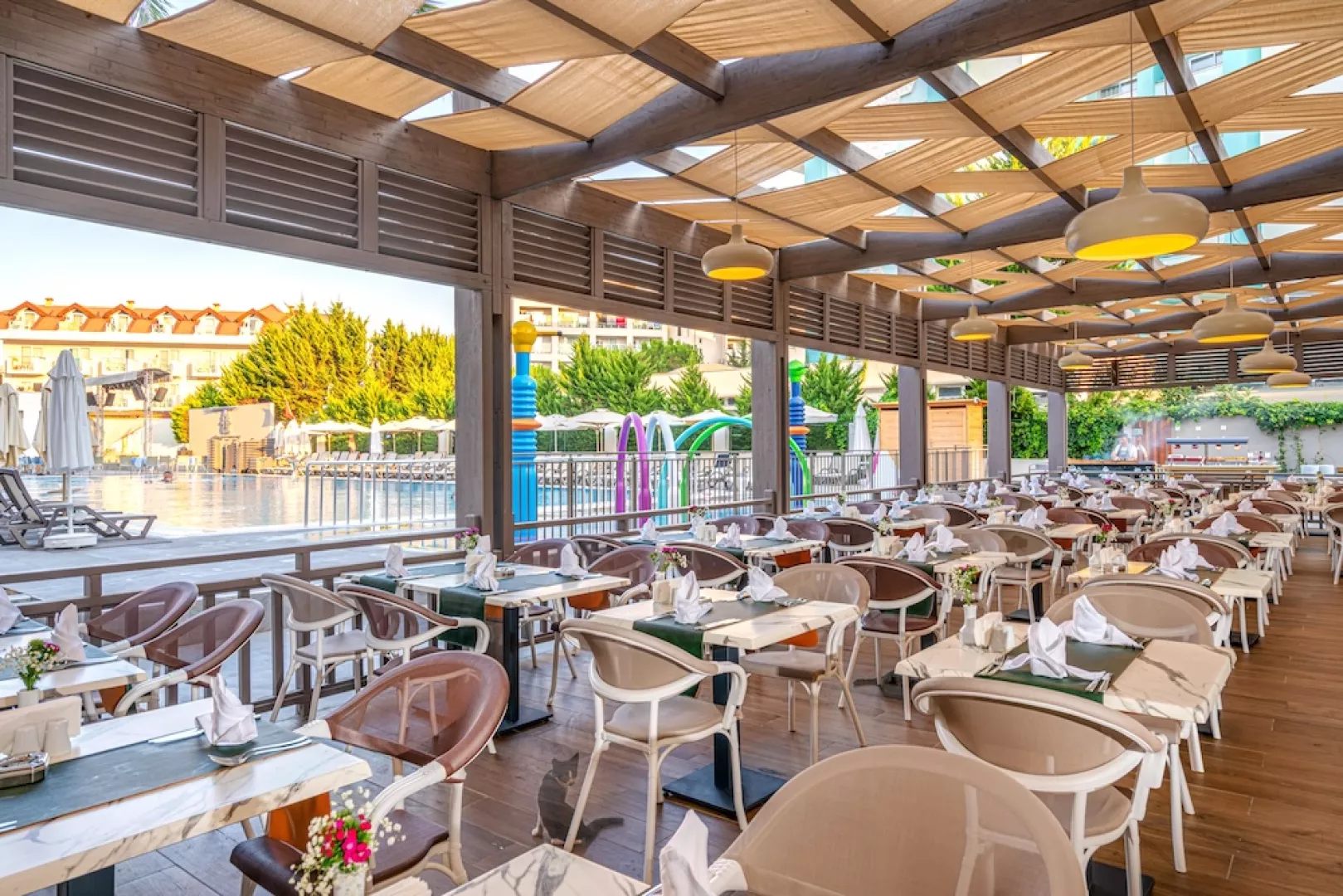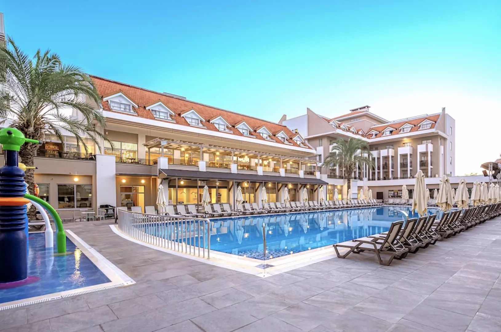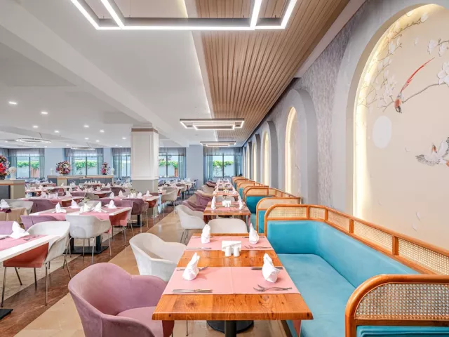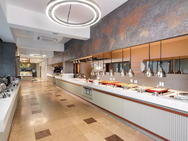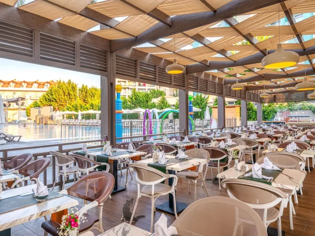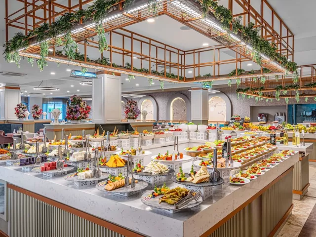 Ponuka zahŕňa ultra all inclusive, raňajky, obedy a večere formou bufetových stolov, neskoré raňajky, alkoholické a nealkoholické nápoje miestnej výroby, pivo a víno (00.00 – 24.00), popoludňajšie občerstvenie, cukráreň, zmrzlinu, gözleme (turecká "pizza") a nočný bufet. Zároveň je k dispozícii 1x za pobyt večera v jednej z á la carte reštaurácií podľa dostupnosti zdarma (nutná rezervácia).