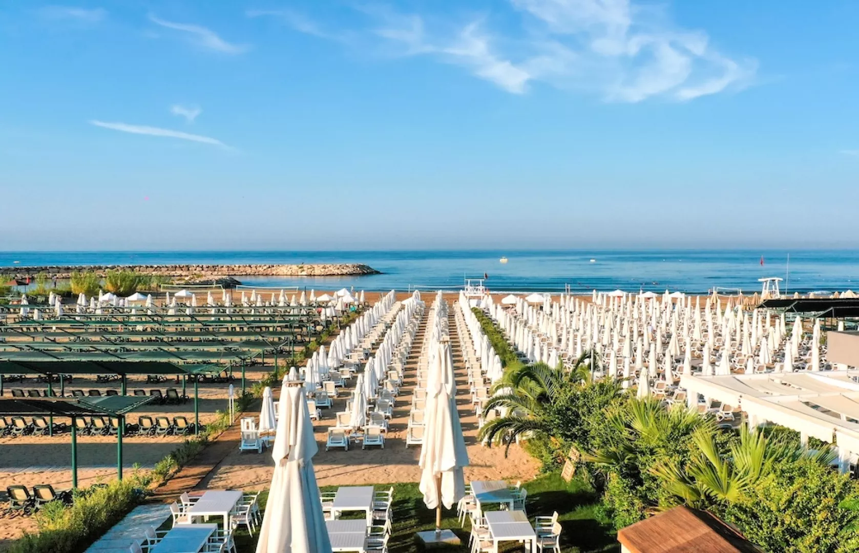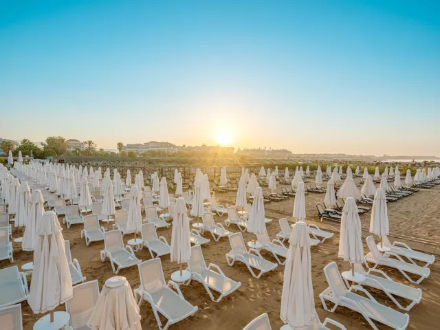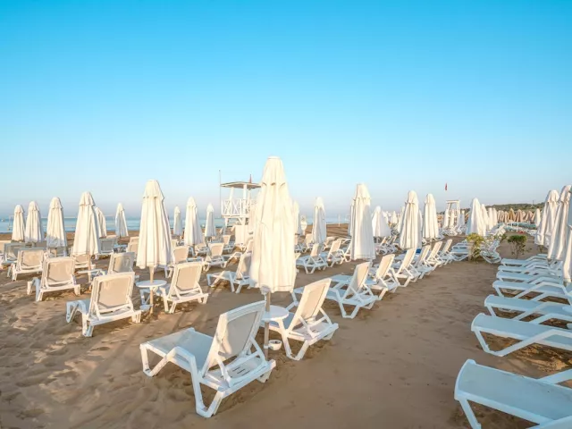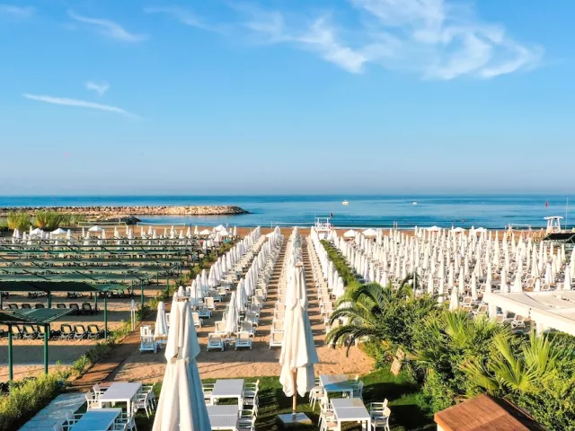 Pláž je priestranná a piesočnatá s príjemným pozvoľným vstupom do vody, čo ju robí vhodnou pre deti aj neplavcov. Ležadlá a slnečníky na pláži sú k dispozícii zdarma, pričom na pláži sa nachádza aj all inclusive bar.